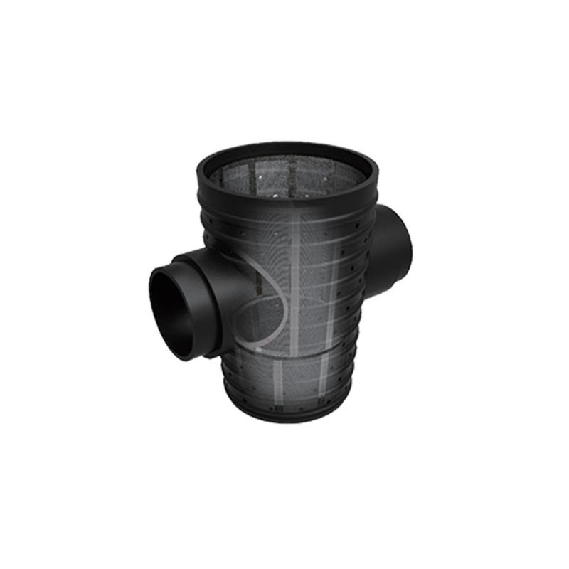 雨水收集渗透井采用HDPE 或PP材质一次性注塑成型,作为一种雨水入渗装置,可以快速方便、安全地将雨水渗透至地下,充分补充地下水,避免出现地面积水现象。该装置井筒下部及底部开孔,雨水渗透井埋入地下时,底部及侧壁开孔区域周围装填碎石、沙及土工布过滤层。成品雨水渗透井内部设置了截污挂篮,可以拦截、沉淀雨水中的沙粒和树叶等垃圾物。